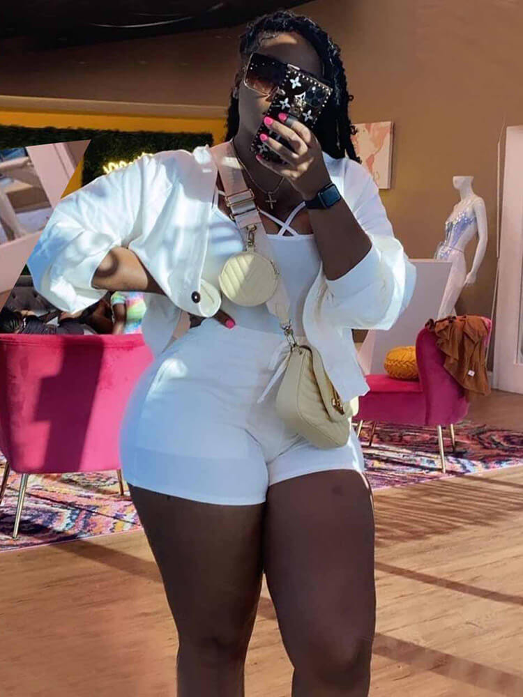 Features:Long sleeve. solid color. button-down. high waist. elastic waist. shorts. two-piece outfit.