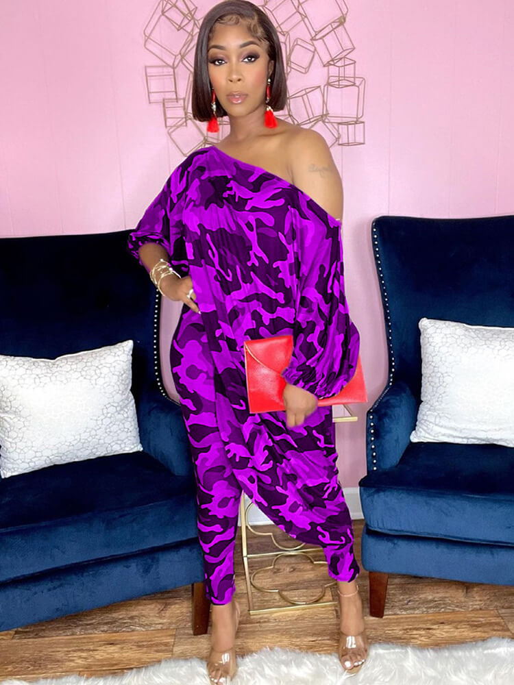 Two Piece Printed Irregular Tops & Skinny Long Pants