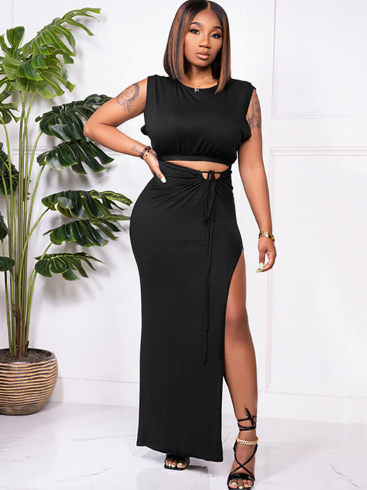 Two Piece Sleeveless Crop Top & Split Maxi Skirts