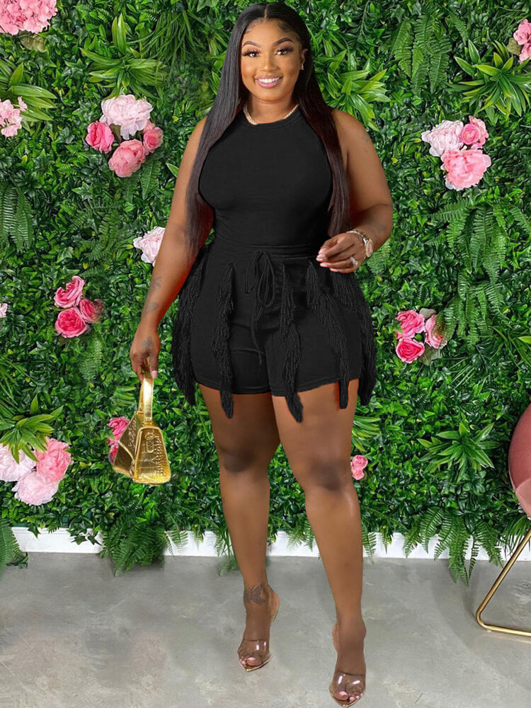 Two Piece Sleeveless Tops & Tassel Shorts
