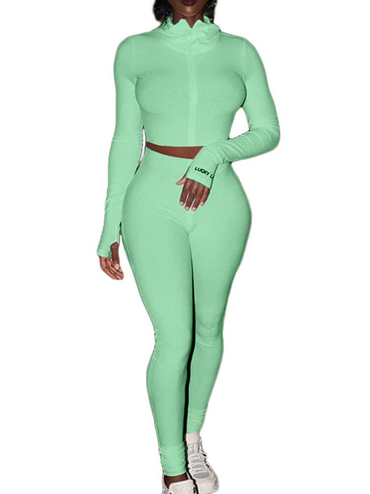 Features:Zipper closure. long sleeve sweatshirt crop top. slim fit. solid color print. rib-knit. drawstring waist. athletic long pants. legging pants.