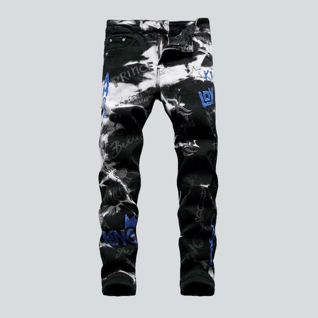 Welcome to the 2023 Autumn Collection �presenting our White Bleach Embroidered Men's Jeans. the perfect addition to any street-style outfit!