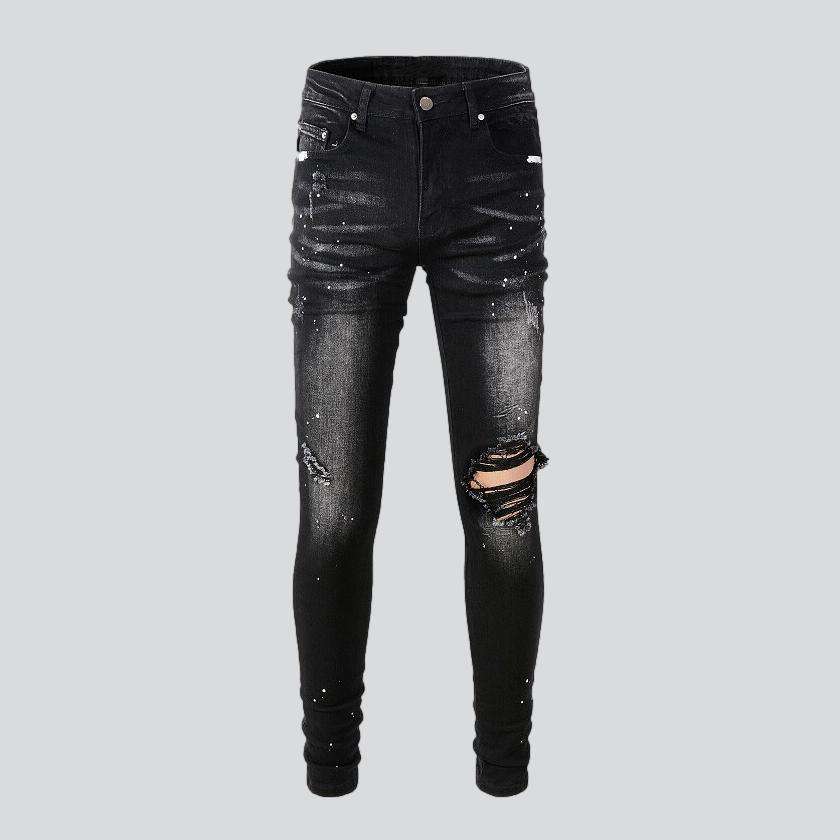 These mid-waist jeans boast a fashion white paint splatter pattern. patterned to get you noticed. Their slim silhouette design. stretchy fabric. and zipper & button closure ensure that you look and feel your best. Whether you're out on the streets or in a club. these jeans will bring out the rebel in you!