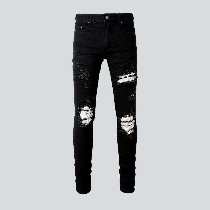 Introducing the 2023 Autumn Collection White Patch Ripped Biker Jeans �a unique combination of laid-back trend and fashion sophistication!