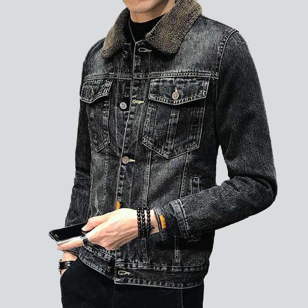 Bring your wardrobe to life with this timeless and chic piece. Get your black men's denim jacket today!