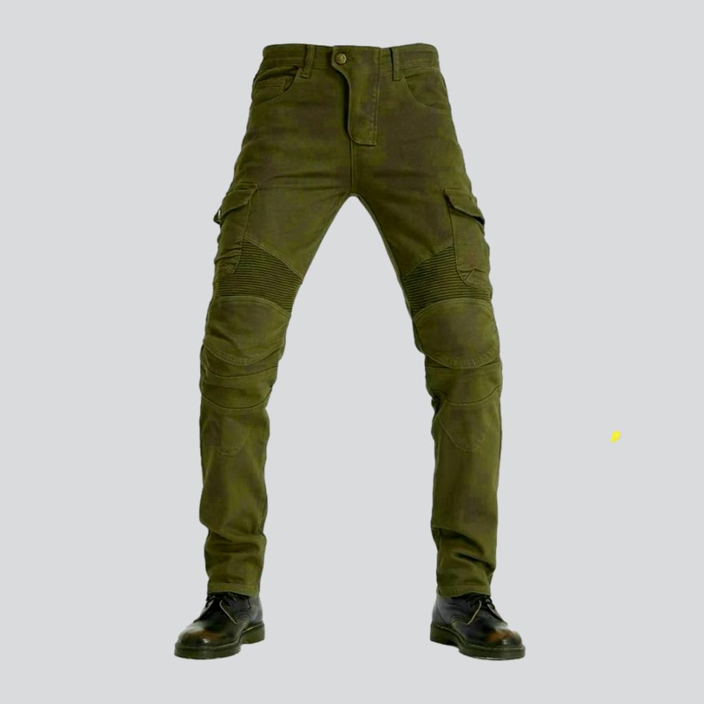 Take the riding look to the next level with our 2023 Winter Collection of men's khaki biker jeans! The perfect blend of contemporary fashion and rebellious attitude. these jeans will be the statement piece you need to make a lasting impression.