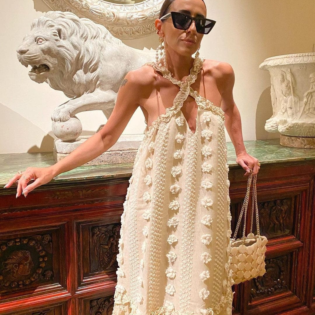 Look fabulous in our Zahara Halter Cross Front Maxi Dress. Its lacy floral detail and delightful ruffle tie-neck style create a three-dimensional layered look. perfect for any summer outing. Feel breezy and stylish with this exquisite design.